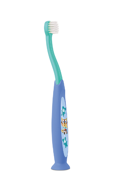 ELGYDIUM BABY Ages 0 to 2 years old, is a training toothbrush for babies and toddlers. Its fun design encourages babies and toddlers to brush their teeth. The perfectly rounded bristles are gentle on the teeth and gums of the very young. A protective head cap ensures optimal hygiene.