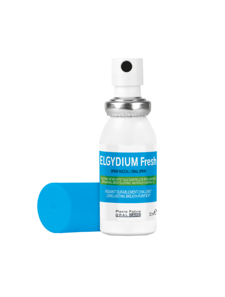 ELGYDIUM BREATH Spray, without sugar, neutralise the factors that cause unpleasant breath. They cleanse the mouth and leave a sense of lasting freshness. They owe their effectiveness to the combination of two natural active ingredients: parsley essential oil and green tea extract, capable of absorbing unpleasant odours and neutralising them.