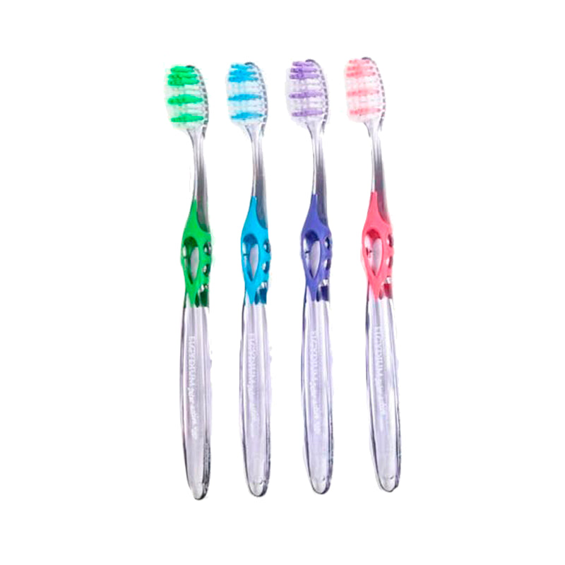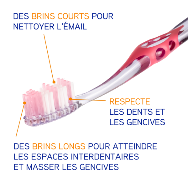 ELGYDIUM INTERACTIVE toothbrush, has two different lengths of bristle (made of Tynex® and cut with a Diamond Technology® to protect the gums and enamel): short bristles for the enamel, and long bristles for interdental spaces and massaging gums.