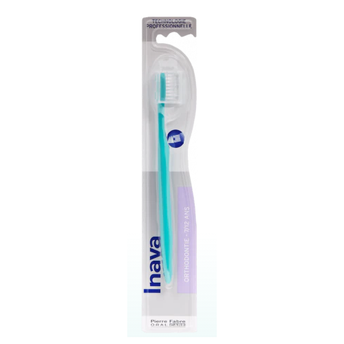 Inava brosse à dents Orthodontie 7 à 12 ans est destinée aux enfants porteurs d'appareil orthodontique.