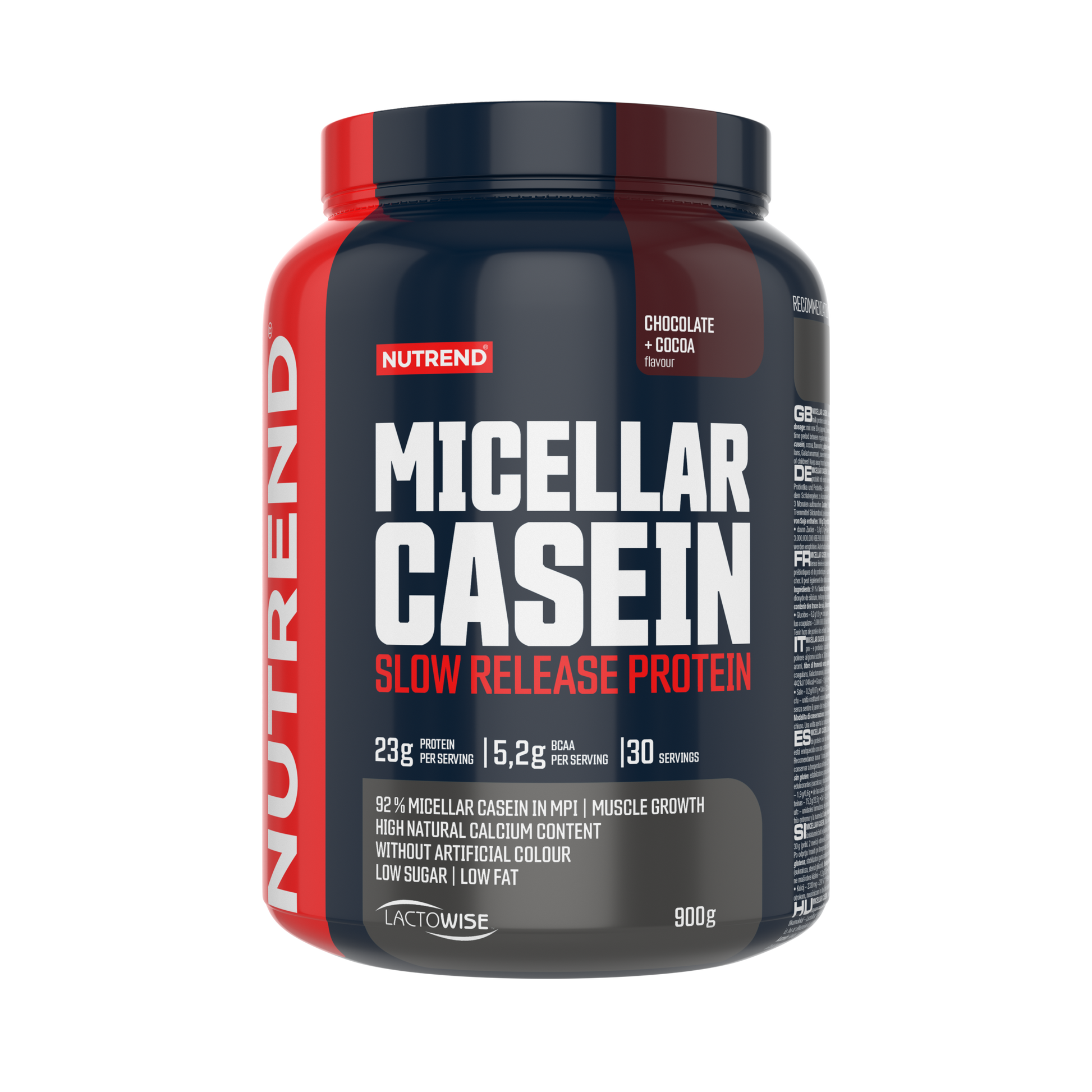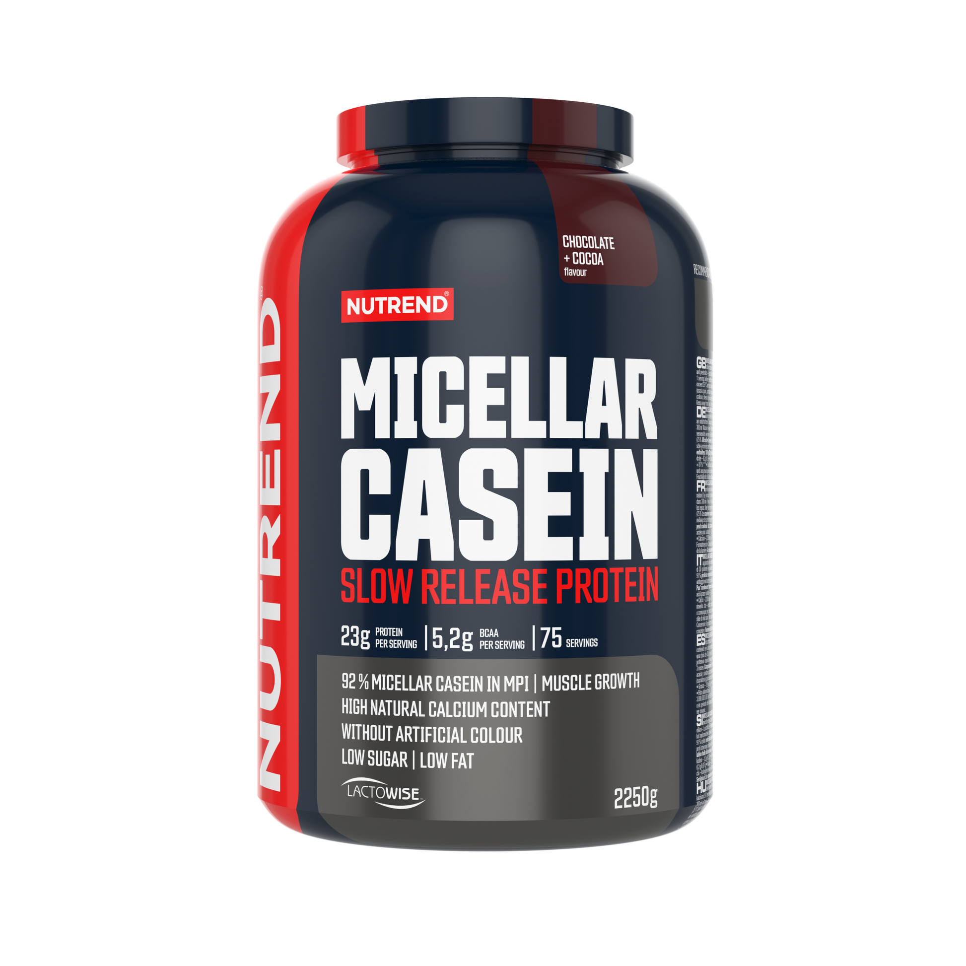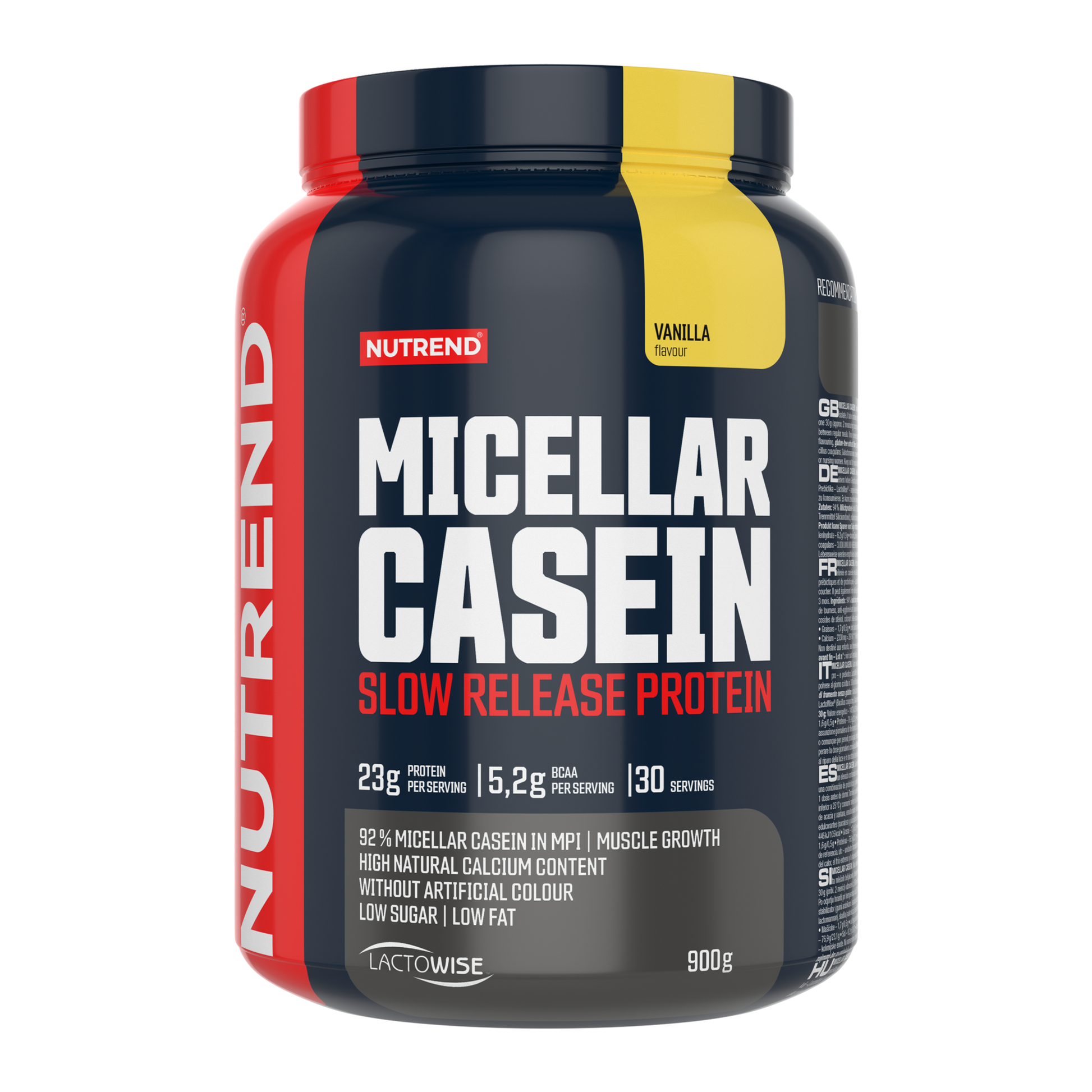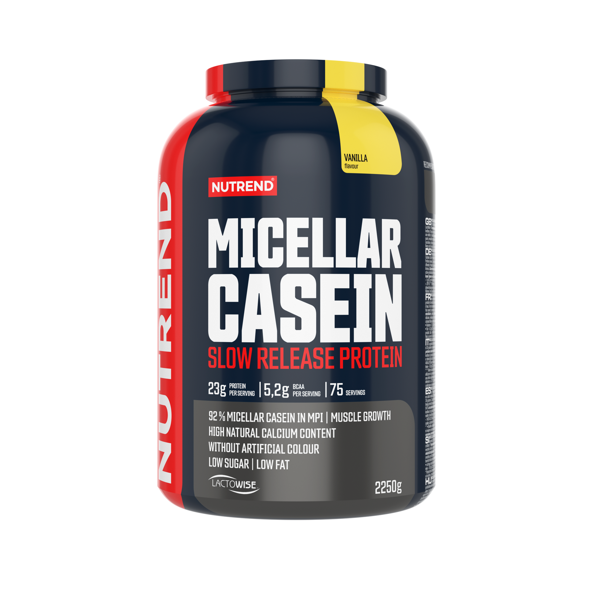 MICELLAR CASEIN is enriched with branded prebiotic-probiotic complex LactoWise™ (Bacillus coagulans, galactomannan). Each dose of this product contains 34 g of protein, more than 1000 mg of calcium, and 1.35 billion cfu of Bacillus coagulans. A sufficient intake of quality protein contributes to muscle growth. Using the NUTREND shaker, it is very easy to mix this product: